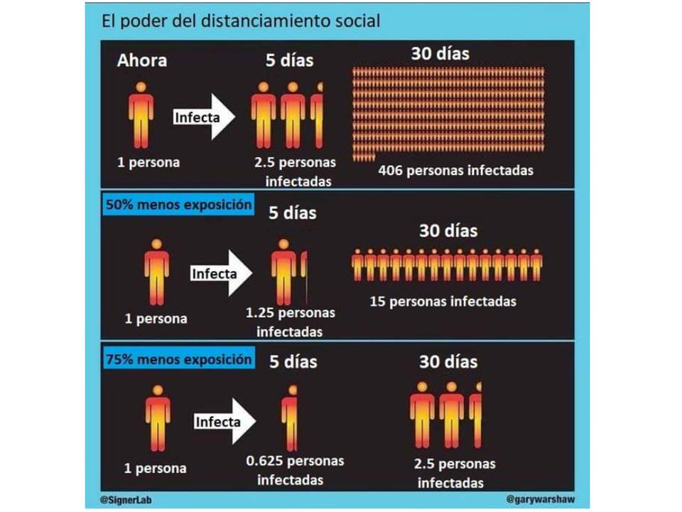 Su tasa de virulencia, capacidad de infectar, es muy alta: por cada infectado se estima que se infectarán 2.5 más personas y así sucesivamente.