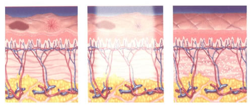 La luz pulsada es como un flash que tiene la capacidad de atravesar las capas de la piel buscando color. Los pigmentos que le dan color a nuestro cuerpo a nivel superficial son la Melanina (en pelos y piel) y la Hemoglobina (le da el color a la sangre, en especial a los vasos superficiales). Estos pigmentos absorben el haz generándose calor, logrando así eliminar la lesión elegida para hacer desaparecer. Este fenómeno recibe el nombre de fototermólisis selectiva.