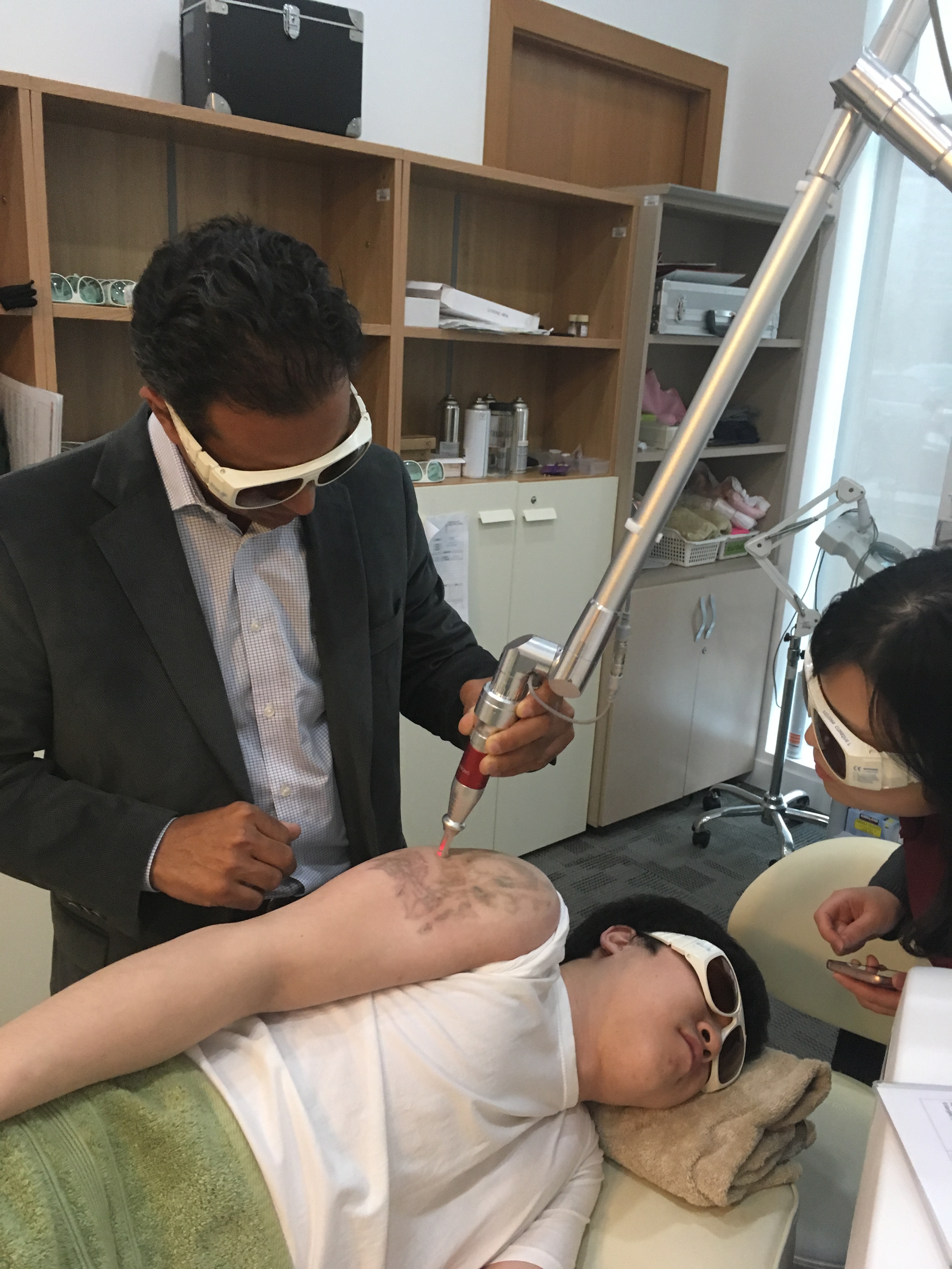 A su vez probó y trató en un paciente el nuevo láser de picosegundos Picoplus, el mas rápido y potente de la actualidad.