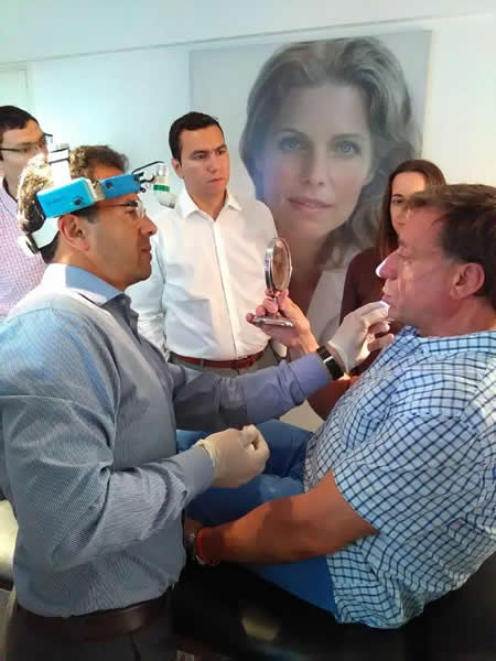 En el auditorio Lombardozzi, el Dr. Perez Rivera realizó una demostración teórica y práctica sobre aplicación de rellenos faciales Aquamid a pacientes.