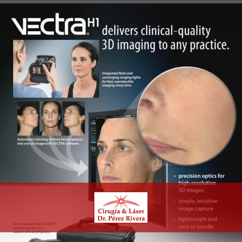 El Dr. Pérez Rivera adquirió el equipo de fotografía y software de imágenes Vectra H1 de Camfield que permite tomar imágenes 3D de los pacientes. Para luego modelizarlas y asi medir y comparar lesiones pigmentarias, vasculares, arrugas, poros dilatados y volúmenes para generar "antes y después" de cada procedimiento láser, radiofrecuencia, cirugías, toxinas y rellenos.