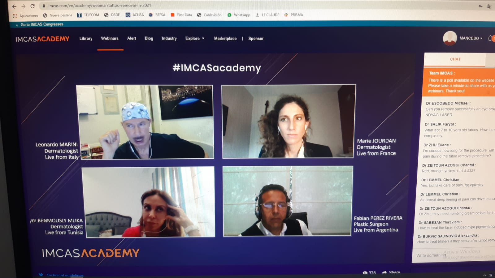El evento IMCAS Tattoo Removal fue un Webinar sobre actualización en el borrado de tatuajes para IMCAS Academy. El Dr. Perez Rivera compartió su experiencia de borrado con mas de 1400 pacientes ya tratados. Excelentes presentaciones de los colegas de Francia, Italia y Tunez e interesante debate final de avances en el tratamiento.