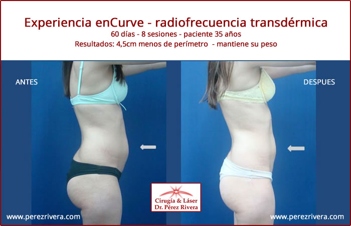 Quería contarles mi experiencia con el tratamiento enCurve. He sido siempre muy delgada pero hace dos años me creció mucho el abdomen. He realizado ejercicios, dietas y otros tratamientos pero nada funcionaba, ni generaba reducción de la zona. Probé la Experiencia enCurve y me dio resultados objetivos sin molestias ni riesgos. Lo recomiendo.